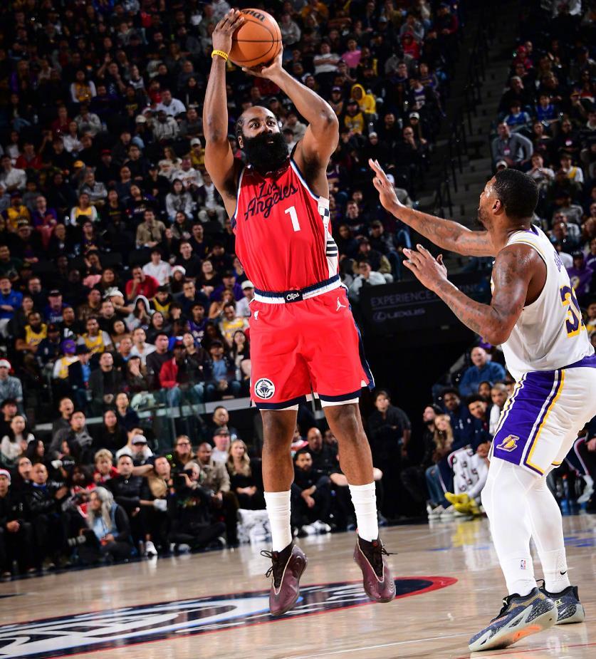 1月23日NBA常规赛迎来一场万众瞩目的对决,洛杉矶快船主场迎战同城湖人队。此役是双方本赛季的第三次交手,前两场比赛双方各自赢下一场!目前湖人26胜16负排名西部第六随时都有跌入附加赛的可能,快船这边凭借过去16场13胜的发挥战绩来到了19胜24负成功挤入附加赛区域!伤病方面伦纳德休战两场后此役正式复出,搭档哈登、柯林斯、祖巴茨、邓恩先发。湖人这边里弗斯不打其他人都能登场,雷迪克沿用詹姆斯、拉拉维亚、艾顿、斯玛特、东契奇的先发阵容。这首发就是标准的双核对双核,也是球星成色的检验。东契奇与哈登,詹姆斯与伦纳德的发挥将直接左右本场比赛的走势,此外最近这段时间斯玛特多次扮演奇兵为湖人2连胜立下大功,快船这边则是双核驱动,球队整体防守也回到了上赛季的水准,对于双方来说都要力争赢球保住排名位次。
